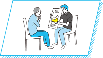 歩行機能やバランス能力の状態を把握するための体力測定を、利用開始時と3ヶ月後、6ヶ月後、その後毎半年ごとに実施。5M歩行や握力など5種目の測定を行い、スタッフがその場でタブレットに記録。その後に評価レポートを作成して、あなたの身体状況を「見える化」します。